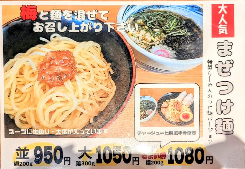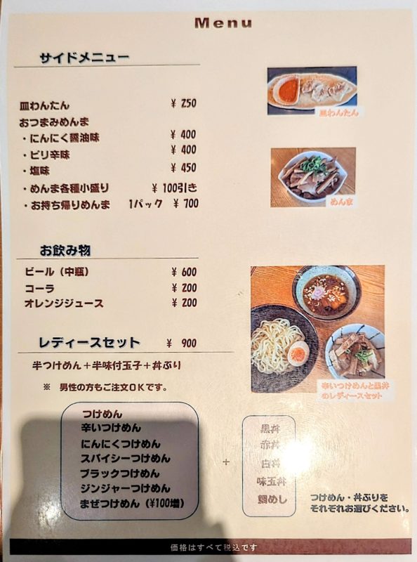 つけ麺だけでも、魚介系や魚介豚骨をベースとした濃厚なつけ汁から、梅や青じそを使ったさっぱりとしたものまで、非常に幅広いバリエーションを提供しています。特に、定番の「にんにくつけめん」は多くのファンに愛されており、その日の気分や好みに合わせて選べるのが大きな魅力です。