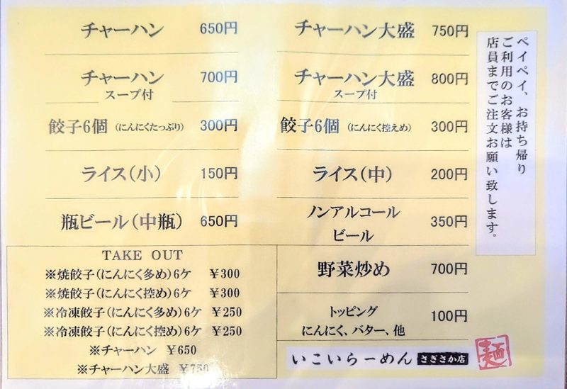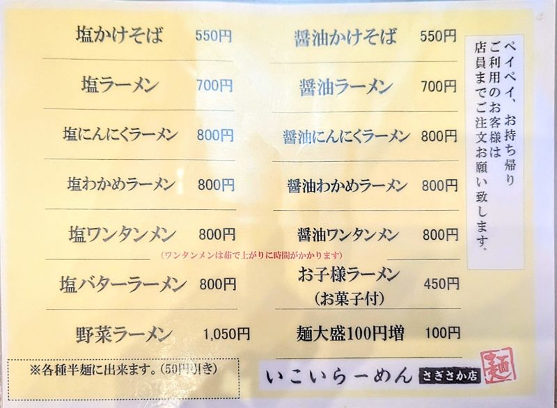 さぎさか店さんでも本店で人気な塩ラーメンやリーズナブルなメニューが人気。
